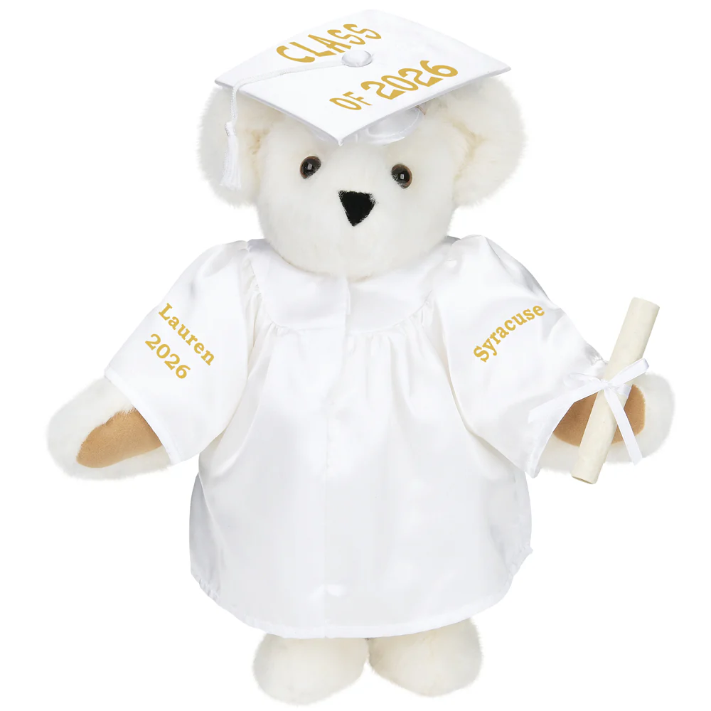 They did it! Hurray! Congratulate them with a festive, comforting gift that will always be there to make them smile as they embark on new ventures. Bear wears a white satin gown and cap with "Class of 2026", and holds a paper diploma. Handmade in Vermont, USA using the softest fur we can get our paws on and 100% recycled stuffing. Guaranteed for life.